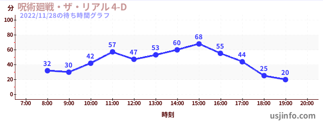 • 呪術廻戦・ザ・リアル 4-D$B$N(B2022年11月28日の待ち時間