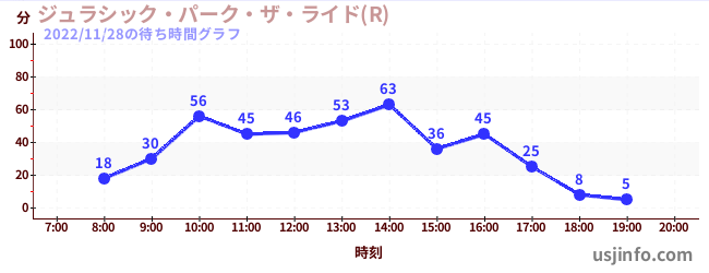 • ジュラシック・パーク・ザ・ライド(R)$B$N(B2022年11月28日の待ち時間