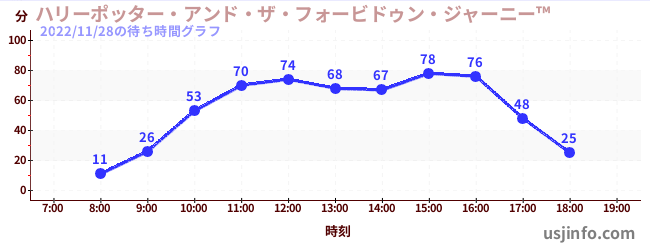 • ハリーポッター・アンド・ザ・フォービドゥン・ジャーニー™$B$N(B2022年11月28日の待ち時間