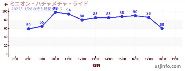 • ミニオン・ハチャメチャ・ライド$B$N(B2022年11月28日の待ち時間