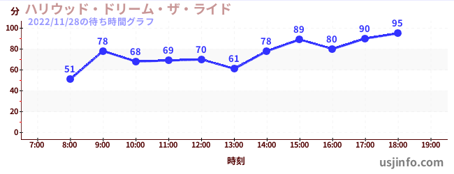 • ハリウッド・ドリーム・ザ・ライド$B$N(B2022年11月28日の待ち時間