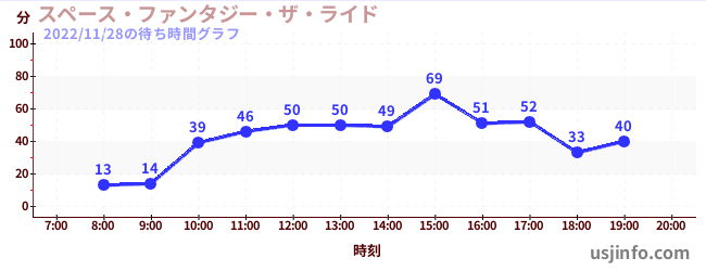• スペース・ファンタジー・ザ・ライド$B$N(B2022年11月28日の待ち時間