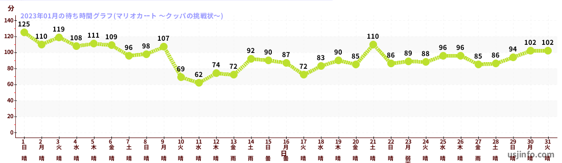 • マリオカート ~クッパの挑戦状~$B$N(B2023年01月01日のの一日平均待ち時間