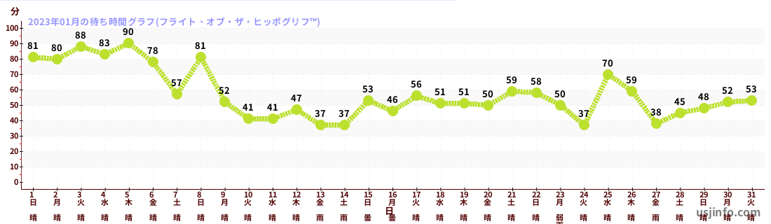 • フライト・オブ・ザ・ヒッポグリフ™$B$N(B2023年01月01日のの一日平均待ち時間