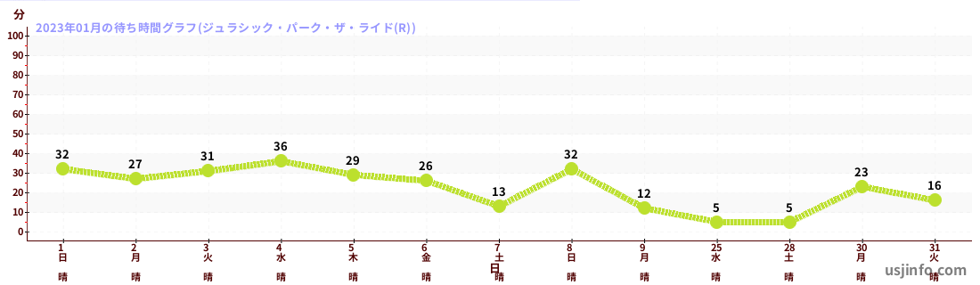 • ジョーズ(R)$B$N(B2023年01月01日のの一日平均待ち時間