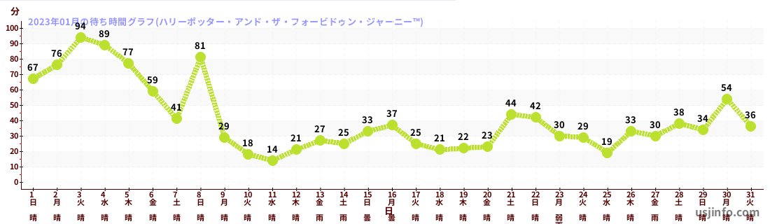 • ハリーポッター・アンド・ザ・フォービドゥン・ジャーニー™$B$N(B2023年01月01日のの一日平均待ち時間