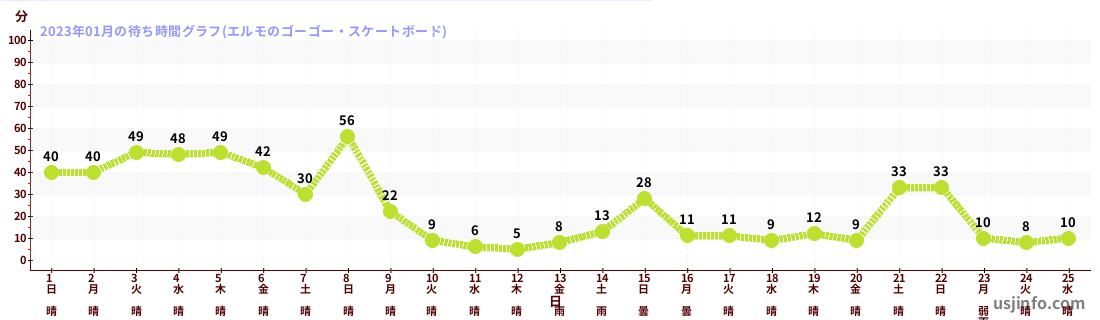 • エルモのゴーゴー・スケートボード$B$N(B2023年01月01日のの一日平均待ち時間