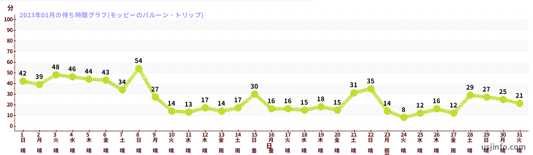 • モッピーのバルーン・トリップ$B$N(B2023年01月01日のの一日平均待ち時間