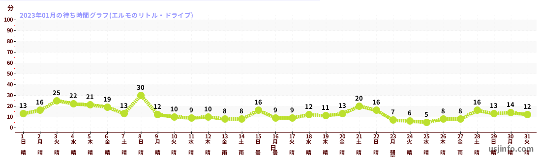 • エルモのリトル・ドライブ$B$N(B2023年01月01日のの一日平均待ち時間