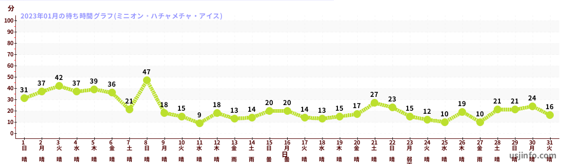 • ミニオン・ハチャメチャ・アイス$B$N(B2023年01月01日のの一日平均待ち時間
