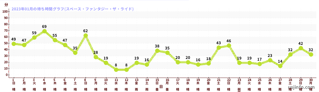 • スペース・ファンタジー・ザ・ライド$B$N(B2023年01月01日のの一日平均待ち時間