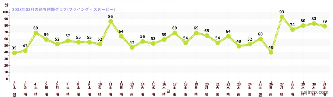 • フライング・スヌーピー$B$N(B2023年03月01日のの一日平均待ち時間