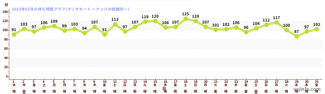 • マリオカート ~クッパの挑戦状~$B$N(B2023年03月01日のの一日平均待ち時間