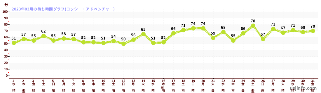 • ヨッシー・アドベンチャー$B$N(B2023年03月01日のの一日平均待ち時間