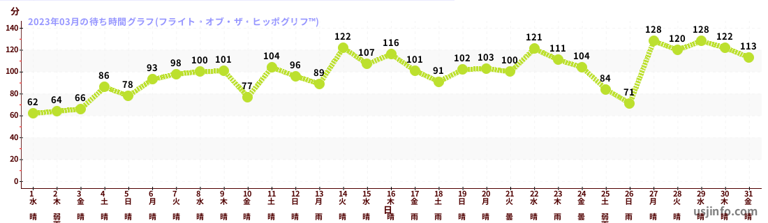 • フライト・オブ・ザ・ヒッポグリフ™$B$N(B2023年03月01日のの一日平均待ち時間