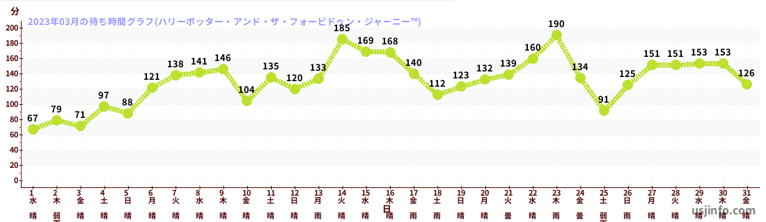 • ハリーポッター・アンド・ザ・フォービドゥン・ジャーニー™$B$N(B2023年03月01日のの一日平均待ち時間