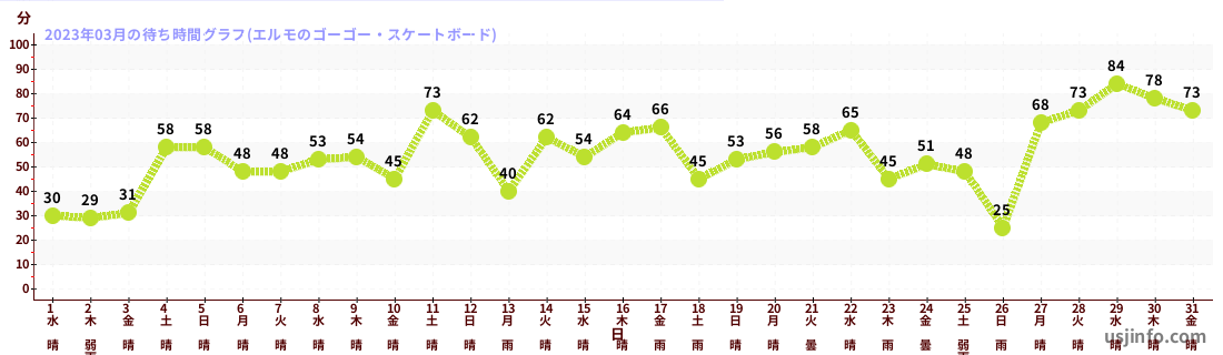 • エルモのゴーゴー・スケートボード$B$N(B2023年03月01日のの一日平均待ち時間