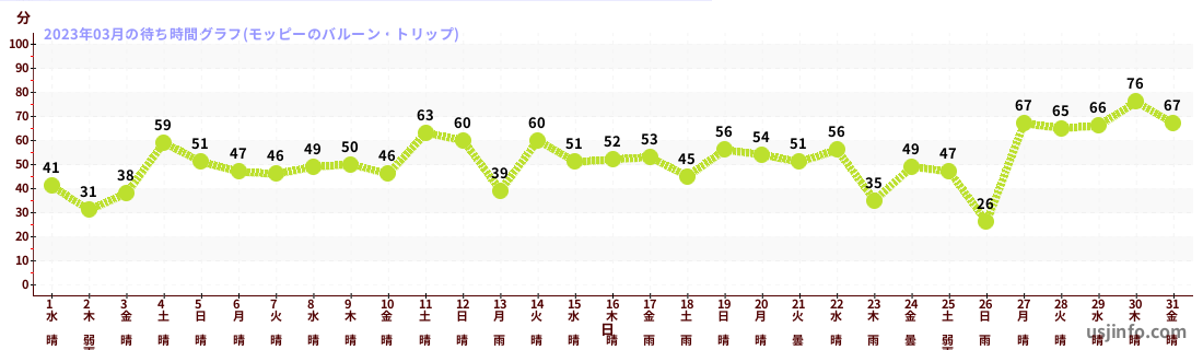 • モッピーのバルーン・トリップ$B$N(B2023年03月01日のの一日平均待ち時間
