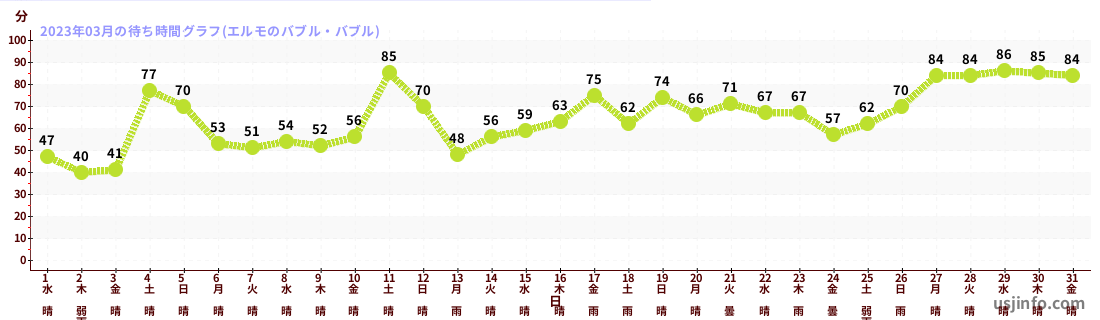 • エルモのバブル・バブル$B$N(B2023年03月01日のの一日平均待ち時間