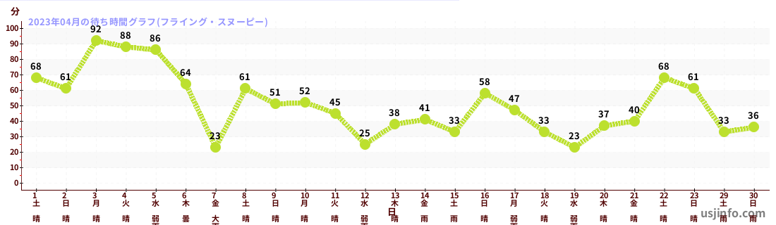 • フライング・スヌーピー$B$N(B2023年04月01日のの一日平均待ち時間