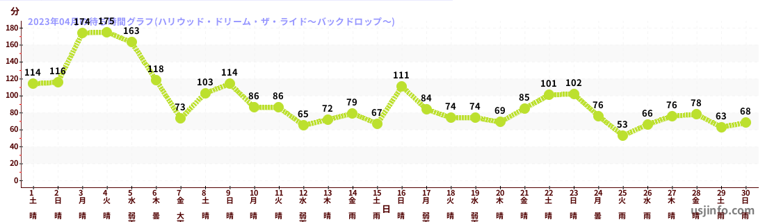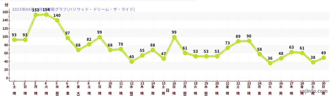 • ハリウッド・ドリーム・ザ・ライド$B$N(B2023年04月01日のの一日平均待ち時間