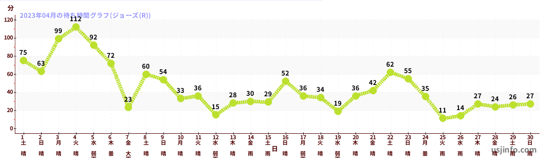 • ジョーズ(R)$B$N(B2023年04月01日のの一日平均待ち時間