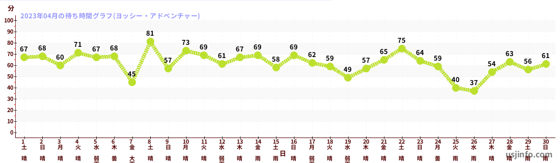 • ヨッシー・アドベンチャー$B$N(B2023年04月01日のの一日平均待ち時間