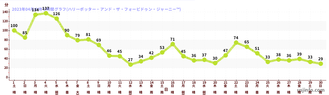 • ハリーポッター・アンド・ザ・フォービドゥン・ジャーニー™$B$N(B2023年04月01日のの一日平均待ち時間