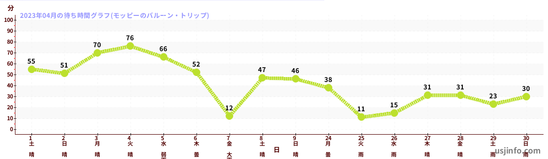 • モッピーのバルーン・トリップ$B$N(B2023年04月01日のの一日平均待ち時間