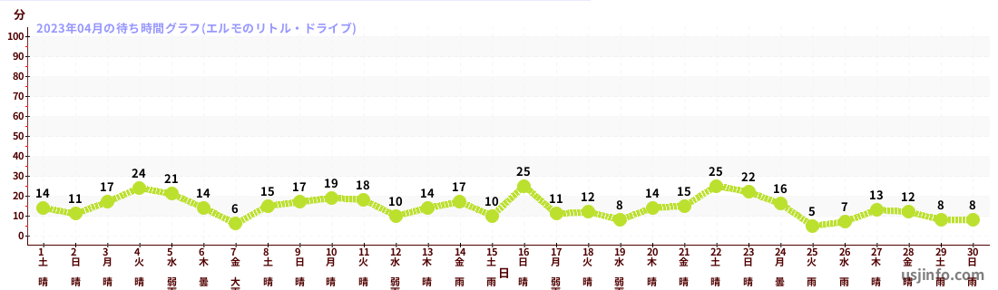 • エルモのリトル・ドライブ$B$N(B2023年04月01日のの一日平均待ち時間