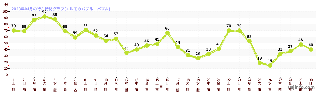• エルモのバブル・バブル$B$N(B2023年04月01日のの一日平均待ち時間