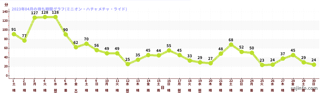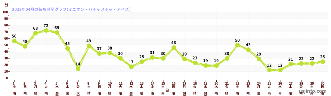 • ミニオン・ハチャメチャ・アイス$B$N(B2023年04月01日のの一日平均待ち時間