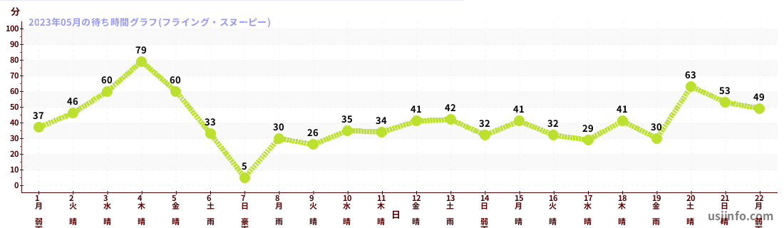 • フライング・スヌーピー$B$N(B2023年05月01日のの一日平均待ち時間