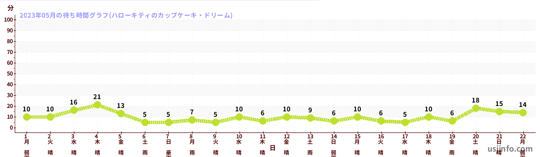 • ハローキティのカップケーキ・ドリーム$B$N(B2023年05月01日のの一日平均待ち時間