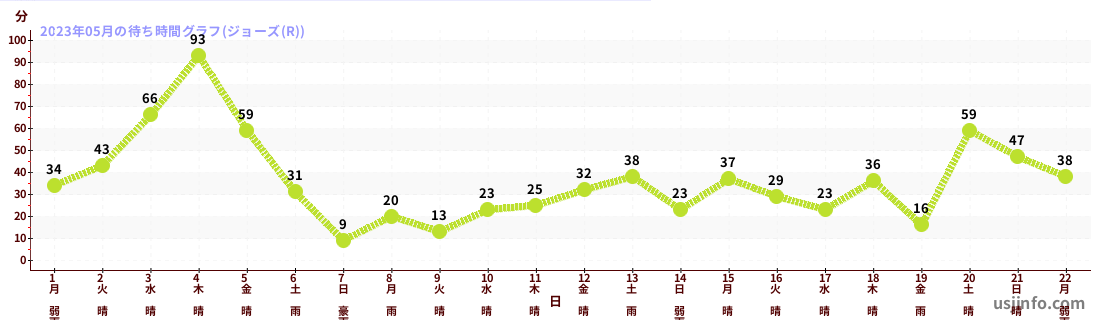 • ジョーズ(R)$B$N(B2023年05月01日のの一日平均待ち時間
