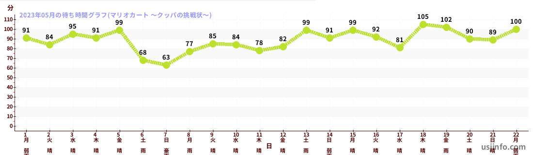 • マリオカート ~クッパの挑戦状~$B$N(B2023年05月01日のの一日平均待ち時間