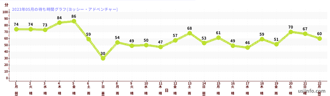 • ヨッシー・アドベンチャー$B$N(B2023年05月01日のの一日平均待ち時間