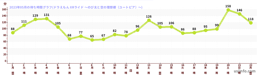 • ドラえもん XRライド ~のび太と空の理想郷(ユートピア)~$B$N(B2023年05月01日のの一日平均待ち時間