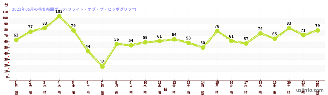 • フライト・オブ・ザ・ヒッポグリフ™$B$N(B2023年05月01日のの一日平均待ち時間