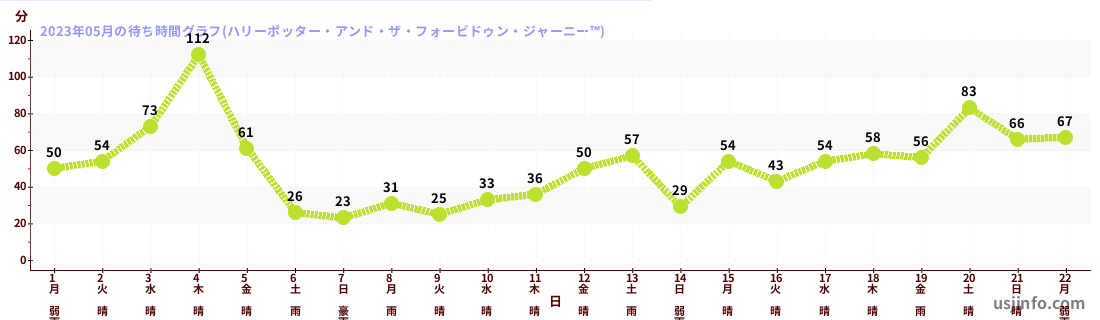 • ハリーポッター・アンド・ザ・フォービドゥン・ジャーニー™$B$N(B2023年05月01日のの一日平均待ち時間