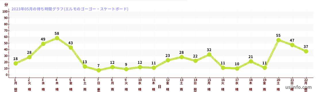 • エルモのゴーゴー・スケートボード$B$N(B2023年05月01日のの一日平均待ち時間