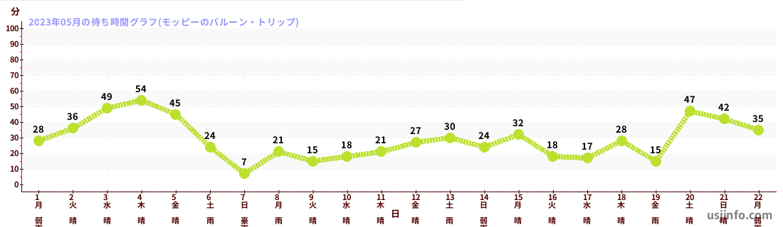 • モッピーのバルーン・トリップ$B$N(B2023年05月01日のの一日平均待ち時間