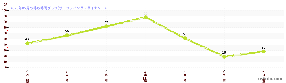 • ザ・フライング・ダイナソー$B$N(B2023年05月01日のの一日平均待ち時間