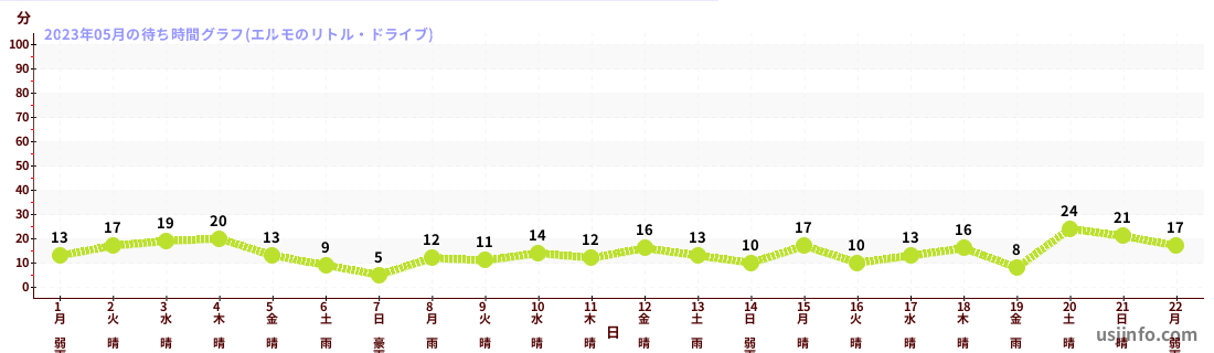 • エルモのリトル・ドライブ$B$N(B2023年05月01日のの一日平均待ち時間