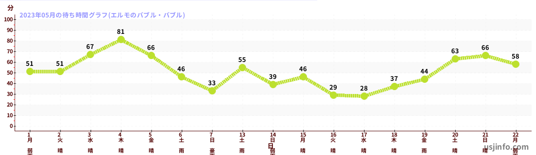 • エルモのバブル・バブル$B$N(B2023年05月01日のの一日平均待ち時間