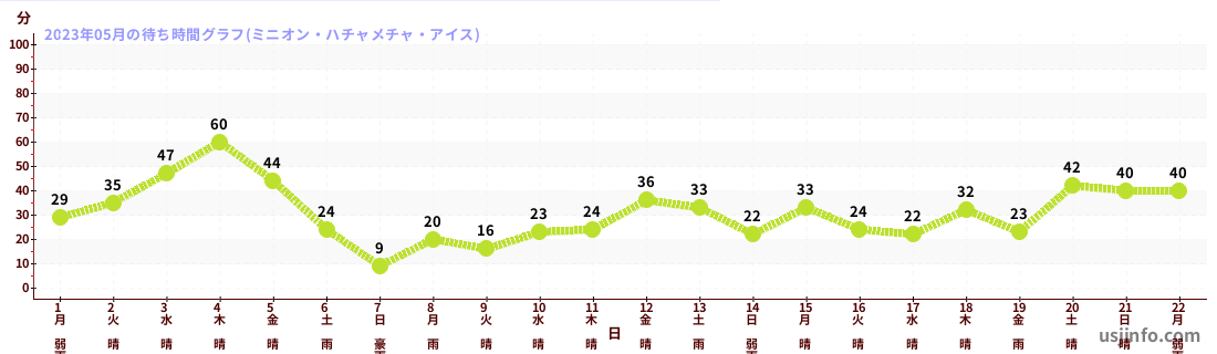 • ミニオン・ハチャメチャ・アイス$B$N(B2023年05月01日のの一日平均待ち時間