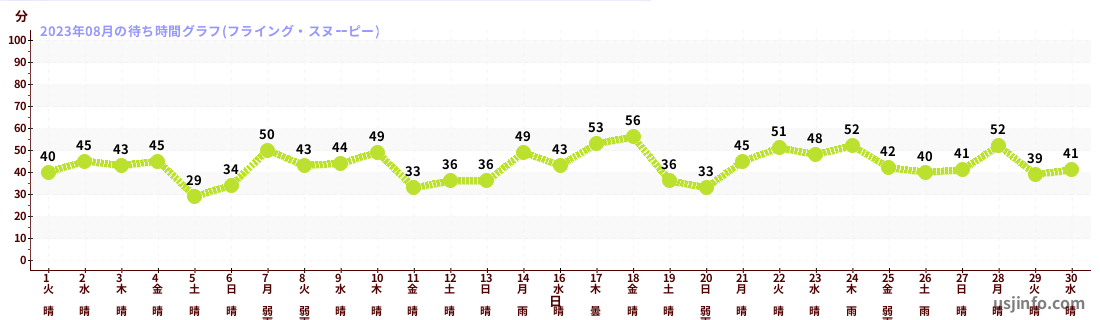 • フライング・スヌーピー$B$N(B2023年08月01日のの一日平均待ち時間