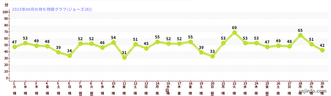 • ジョーズ(R)$B$N(B2023年08月01日のの一日平均待ち時間