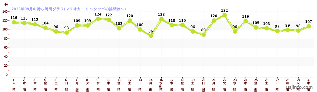• マリオカート ~クッパの挑戦状~$B$N(B2023年08月01日のの一日平均待ち時間