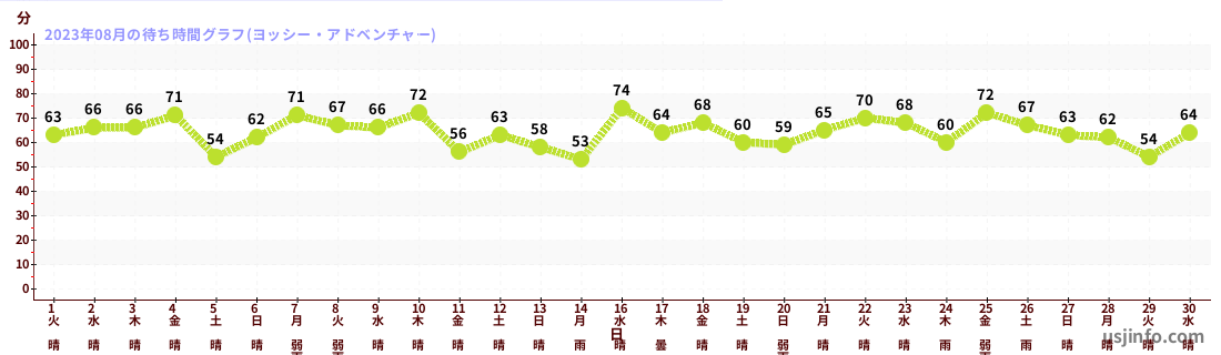 • ヨッシー・アドベンチャー$B$N(B2023年08月01日のの一日平均待ち時間